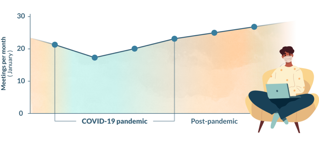 When we were rolling up our sleeves to jump into the data, we expected that remote work from the pandemic would have increased the number of meetings on our calendars. After all, everything that would be a quick chat in-person would require something on the calendar to discuss live from afar.